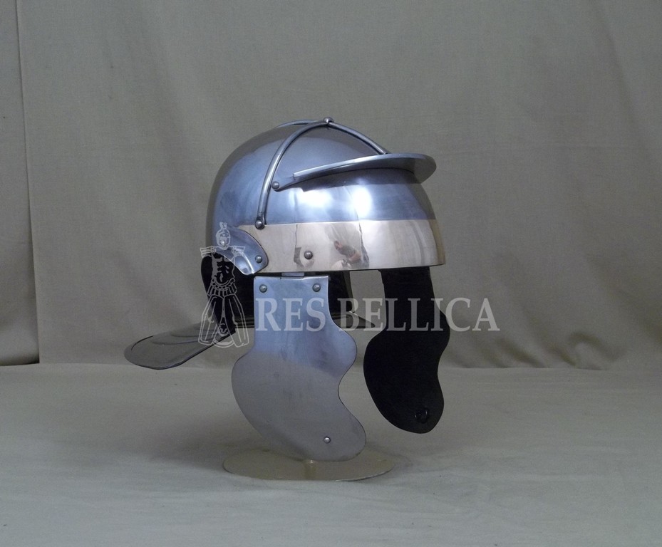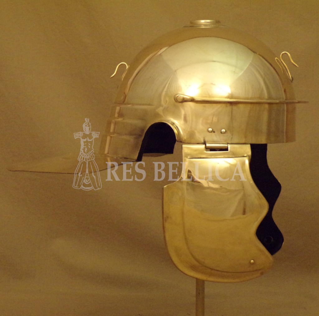 Tutti hanno presente la tipica forma dell’elmo del “classico” legionario romano: calotta emisferica con paranuca ampio e coprente (il tutto in un unico pezzo di metallo), paragnatidi sagomate e una sorta di “visiera” sul frontale dell’elmo.