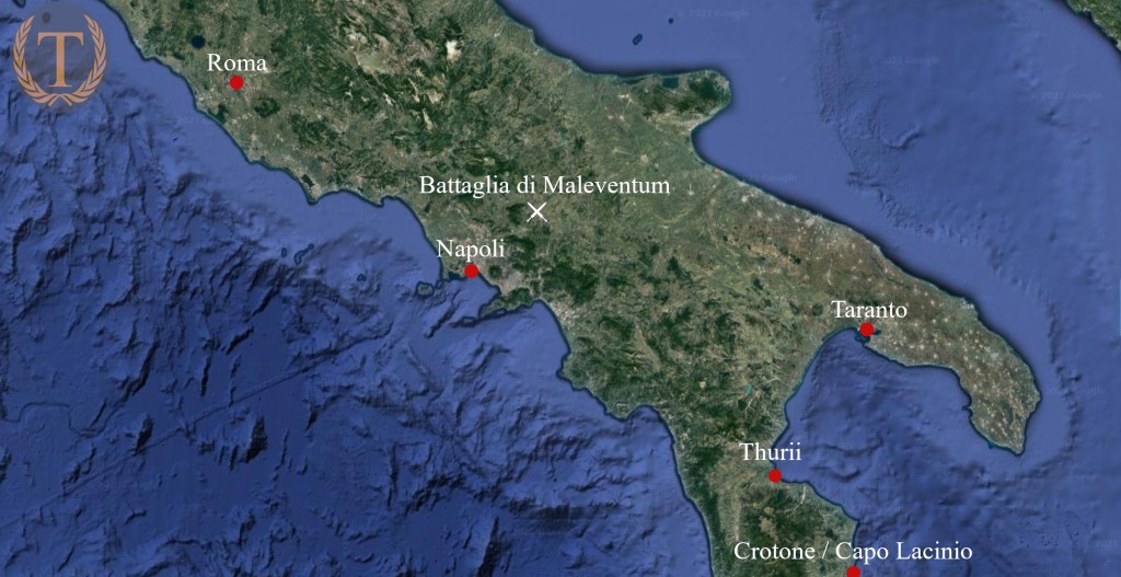 Alla notizia dell’avanzata di Pirro verso il Sannio i due consoli decisero di presidiare le vie per Roma: Lentulo quella centrale, Dentato quella più orientale, presso la città di Maleventum.