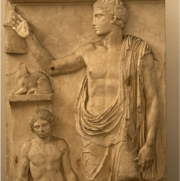 Ne è uno splendido esempio un rilievo funerario di Salamina, realizzato attorno al 430 a.C.