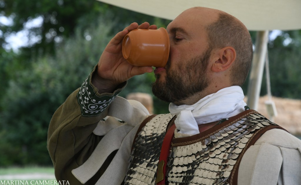 L’alimentazione del miles romano tardo antico era costituita solitamente da pane, vino, olio e carne (castrato o maiale salato).
