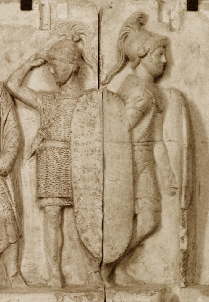Purtroppo anche queste interpretazioni sono poco risolutive, basate principalmente su fonti iconografiche, come il rilievo dell’Ara di Domizio Enobarbo o la Colonna Traiana – entrambe fonti che, tuttavia, non mostrano mai un saluto militare in maniera chiara e inequivocabile. Anzi, spesso sembrano non mostrarlo affatto.