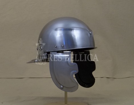 Questo tipo di elmo in ferro infatti, definito “elmo imperiale gallico” o “tipo Weisenau”, deriva da elmi di ferro di origine celtica (tipo “Port”), inglobati dagli eserciti romani durante le campagne di Cesare in Gallia e ben presto prodotti e diffusi in seno allo stesso mondo romano.