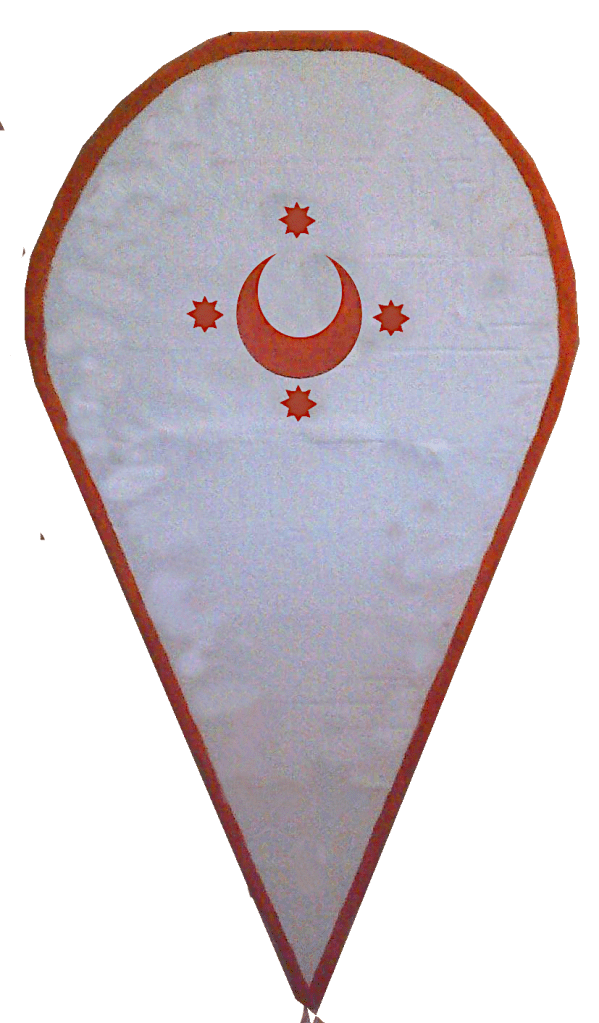 Sotto l’influsso dell’Occidente latino, fa la sua comparsa anche un altro tipo di scudo triangolare, più piccolo, noto in inglese come heater shield, un neologismo nato nell’Ottocento per via della forma somigliante alla piastra di un vecchio ferro da stiro.