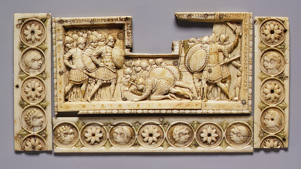 Lo scudo del dittico di Stilicone mostra inoltre un piccolo ritratto imperiale. Questo era quasi certamente un’applique metallica poi fissata sullo scudo, per la quale si ha almeno un parallelo a livello archeologico.