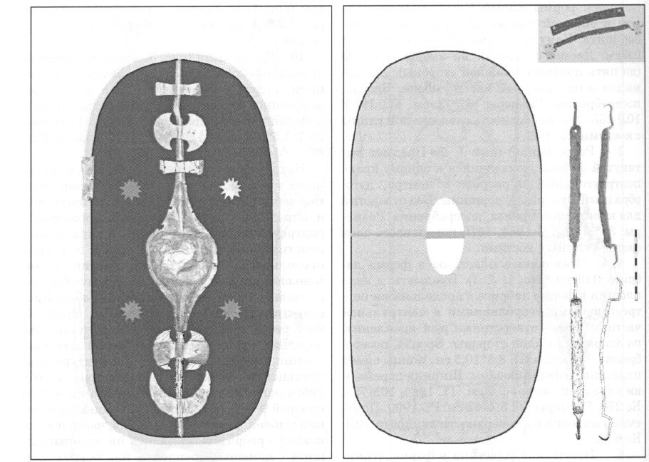 Inoltre, alcuni rari reperti mostrano un uso di decorazioni metalliche sulla tavola dello scudo.