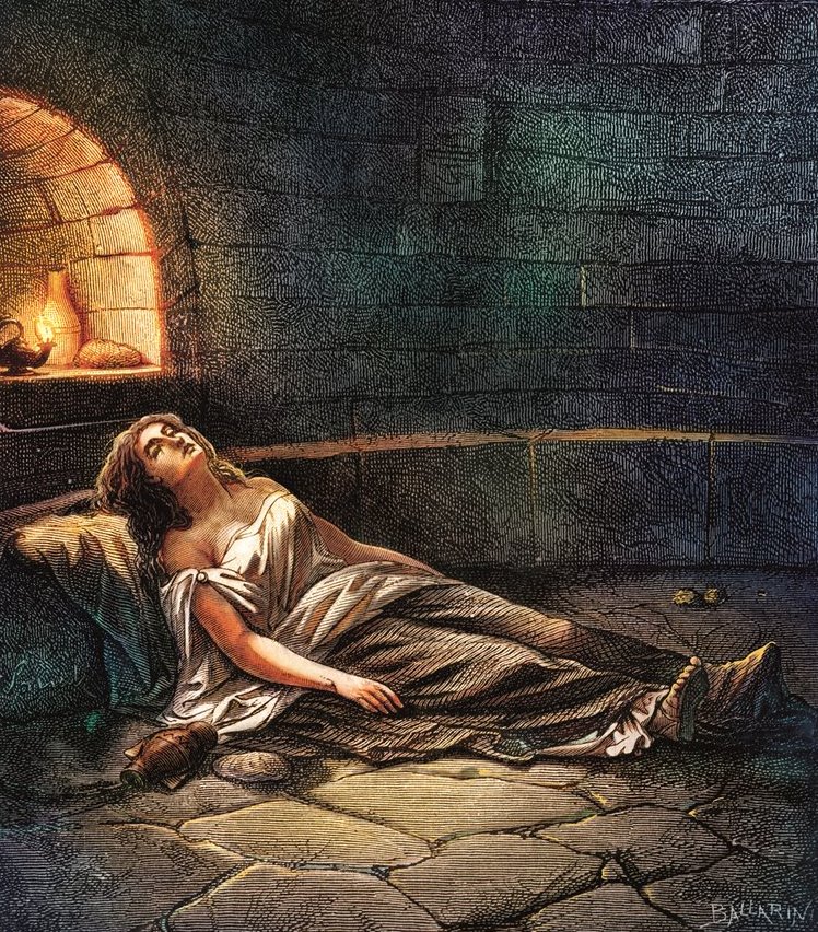La morte più idonea per una donna era quella per inedia o per strangolamento, che però a differenza della prima non era una prerogativa solo femminile, ma era considerata una morte privilegiata, prevista anche per i condannati di sesso maschile di particolare riguardo. La morte per inedia non uscendo dall’ambiente privato e domestico era perfetta per la sfera muliebre, ed era anche vista come meno violenta.