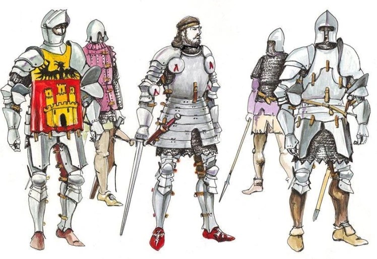 Almeno a giudicare dall’iconografia disponibile, sembrano venire favorite soprattutto armature “alla milanese”, che rispetto alle armature “gotiche” (o “alla tedesca”) presentano linee più morbide, meno spigolose, e non hanno le caratteristiche “carene” dei modelli tedeschi.