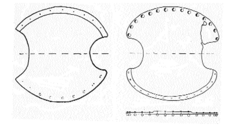Tuttavia la terminologia di Polibio, che parla di una lastra di bronzo di una spanna (ca. 20 cm) pante pantòs, ovvero “tutt’intorno”, lascia abbastanza chiaramente a intendere una forma circolare – come del resto confermano proprio i reperti di Numantia.