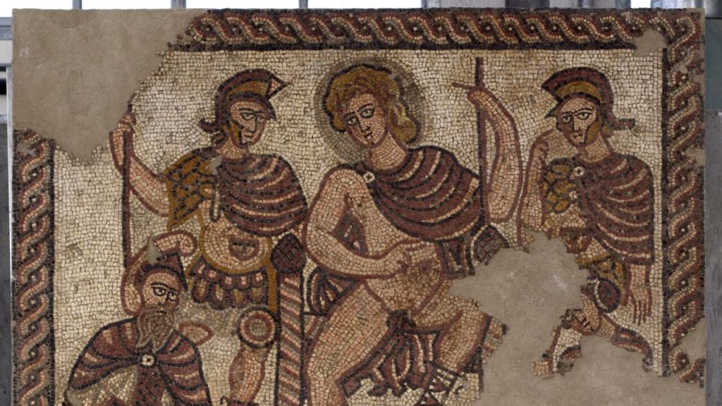 Vi è raffigurato un uomo in nudità eroica assiso in trono, da alcuni identificato come Achille e da altri come l’imperatore Onorio (figlio minore di Teodosio e fratello di Arcadio).