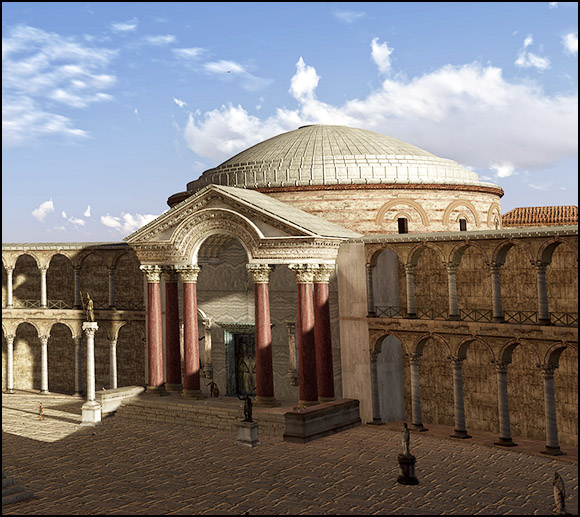 I fori non ricevono più manutenzione e la reazione selvosa fa il resto: inondazioni e detriti sostituiscono il lastricato col fango, diventano pascoli e macchie boschive. Solo i grandi edifici religiosi resistono: basiliche e templi un tempo pagani. Questi conservano infatti larga parte del loro antico arredo. Costante coglie l’occasione di abbellire la capitale Costantinopoli e di ingraziarsi i decurioni che governano la sua futura meta, Siracusa.